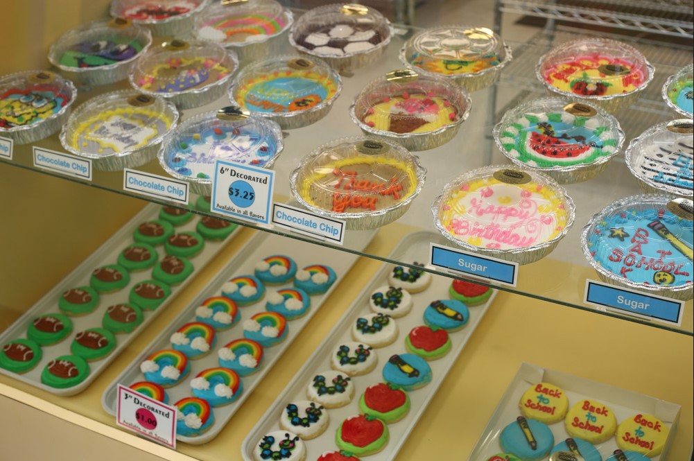 After a year and a half of managing her cookie business, baking, and decorating in her basement, it was apparent that a change was necessary; Eileen and her family recognized that it was time to expand. The family opened the first Eileen’s Colossal Cookies shop in their hometown of Hastings in 1983. As Eileen had begun in her basement kitchen, the business baked all cookies from scratch, and offered to create any custom design that customers requested. This, alongside the delicious taste and inexpensive price, helped Eileen’s business to blossom steadily. In 1987, another shop was opened in Grand Island, Nebraska, and then another in Kearney, Nebraska in 1991. This was the springboard that opened the door to a franchising opportunity. Today, Eileen’s Colossal Cookies has spread into twenty-six different locations in nine different states, and, despite growing exponentially, has remained faithfully tied to Eileen’s family over the decades. Eileen’s two sons, Gabe and Tony, have both held managerial positions in the business since the 2000s, running the operations of the various locations and directing the franchise, respectively. Eileen’s Colossal Cookies continues to be a thriving business and frequently gives back to the community through a fundraiser program. The designs crafted by the Eileen’s skilled decorators have occasionally made the news, including one frosting depiction of Jason Kelce just before his viral, intentional tumble from a suite window at a Kansas City Chiefs game. Any design you can think of, Eileen’s skilled decorators are ready and eager to craft your idea to life in the form of a giant cookie! Eileen’s innovative spirit still dances in the high-quality of the dough and the playful, artistic decorations.