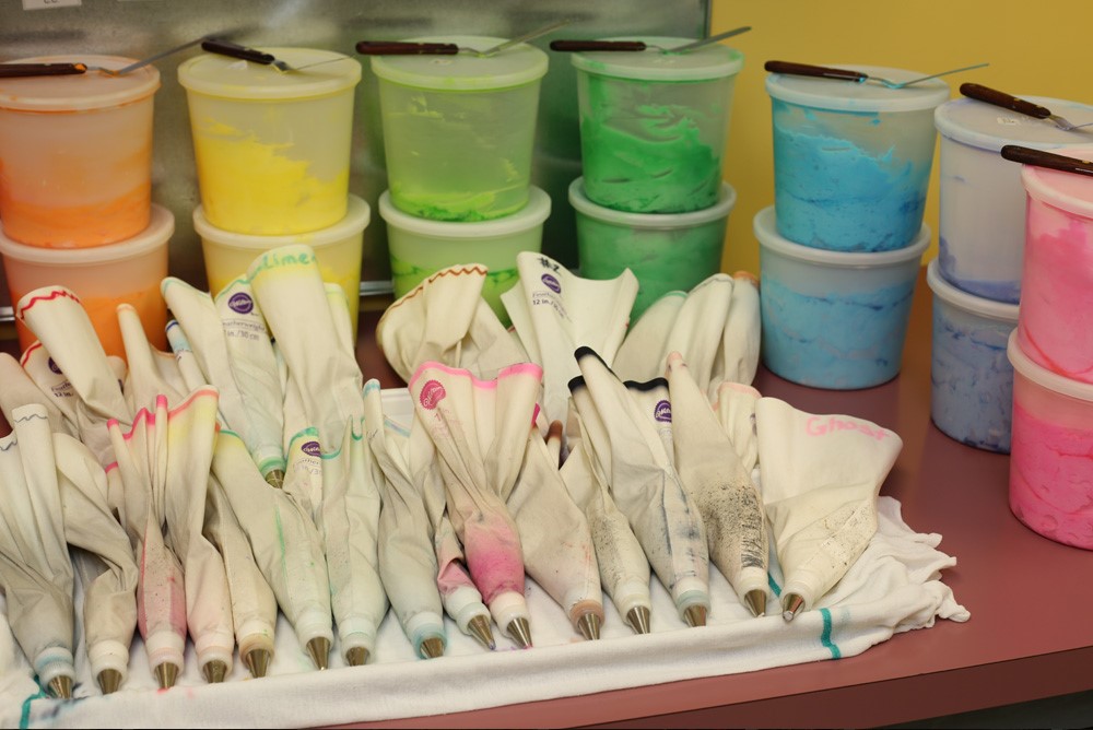 Eileen’s passion for the art of dessert decoration was born from a universal but often underappreciated aspect of parenting—the desire to make something our kids will enjoy. Eileen wanted to create fun and appealing cakes to make her two sons’ birthdays extra special, so she signed up for a cake decorating class to learn how to make art out of frosting. But cakes did not quite turn out to be her flavor. While in Omaha, she spotted large, decorated cookies while shopping at the Cookie Factory, and was inspired. She went back to her home and, from the kitchen in her basement, she baked a few of her mother’s old cookie recipes, and took flight. Although Eileen and her husband, Tom, both worked selling real estate at Gartner Realty, Eileen’s father’s company, she decided to start a bakery. Because she worked from her basement, she recognized the need for a bold approach to build a customer base and promote her business, so she got creative. She started by paying for ads to run in the newspaper that offered deliveries of her cookies for a very reasonable price. But that wasn’t enough to spread the word, so Eileen decided to offer a special treat—free delivery in a cookie monster costume. Soon she had a route established for making deliveries daily to local stores that sold her plain 6-inch cookies as well as a growing base of customers that loved her high-quality cookie flavors and creative decorations.